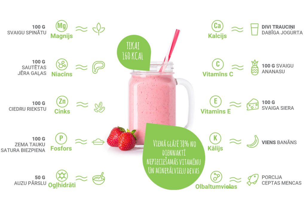 Sabalansēts ēdiens glāzē. Formula 1 kokteilis palīdz kontrolēt patērēto kaloriju daudzumu un papildināt ikdienā ķermeni ar vissvarīgākajiem vitamīniem, minerālvielām un olbaltumvielām.